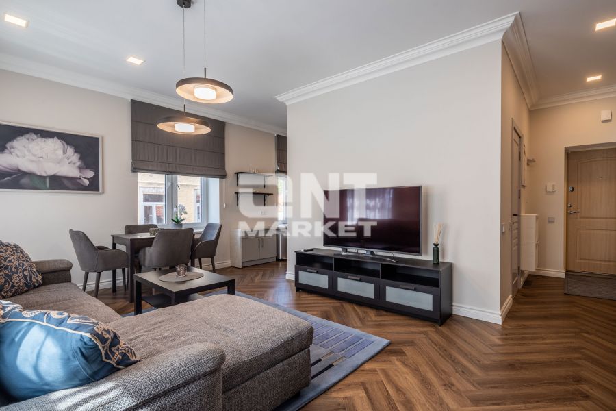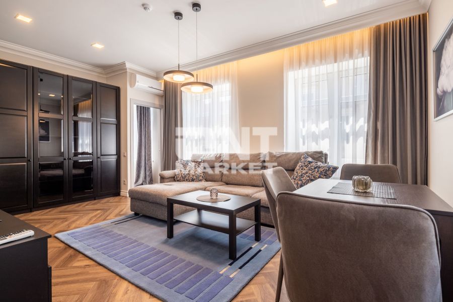 The flat is spacious and light: a living-room, a kitchen, a bed room and a bathroom. The apartment has all necessary household equipments. There is a security system, internet, cable TV and air conditioning system.